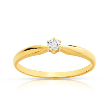 Bague solitaire or 750 jaune diamant 10/100e de ca