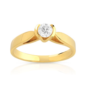 Bague solitaire or 750 jaune diamant 30/100e de ca